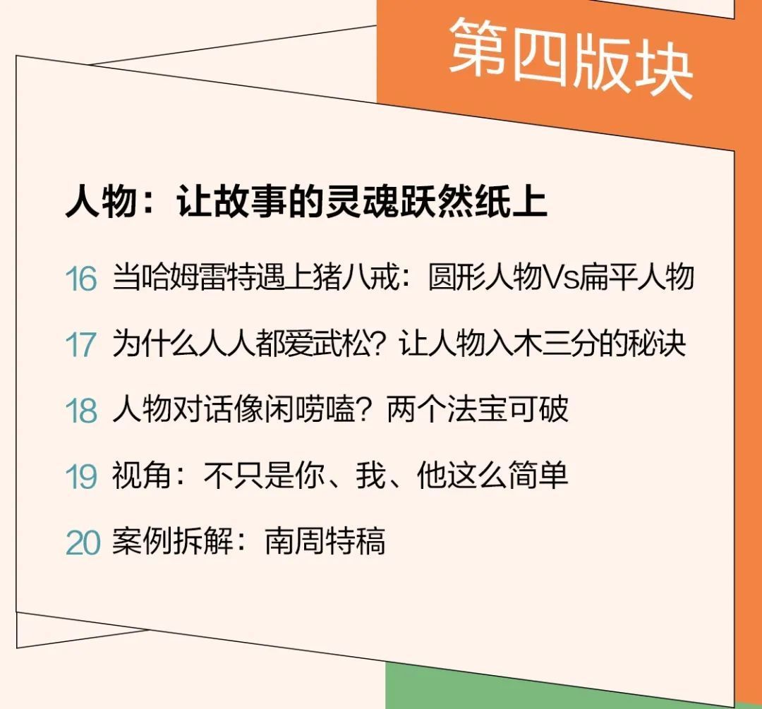 整个课程五大版块的内容横向涵盖主题构思、素材库搭建、材料整理、情节、结构、人物、文笔、风格等全流程,纵向囊括开头、中段、结尾、修改、练笔等环节,形成一套完整、系统的写作方法论。